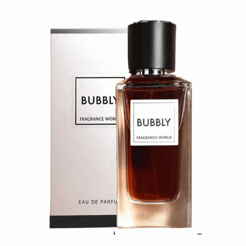 نت های ابتدایی عطر ادکلن fragrance world bubbly جذاب و دوست داشتنی فلفل سیاه و صورتی و المی هستند. قلب این عطر را ترکیب الیبانوم و زعفران تشکیل می دهد. پایان بخش این عطر ترکیبی از وانیل بوربن، جیر و سدر می باشد. آکوردهای اصلی این عطر یونیسکس شامل آکوردهای وانیلی ، تند و تازه ، چرم ، گرم ، پودری ، کهربا ، مشک دار ، معطر ، بالزامیک می شود .
