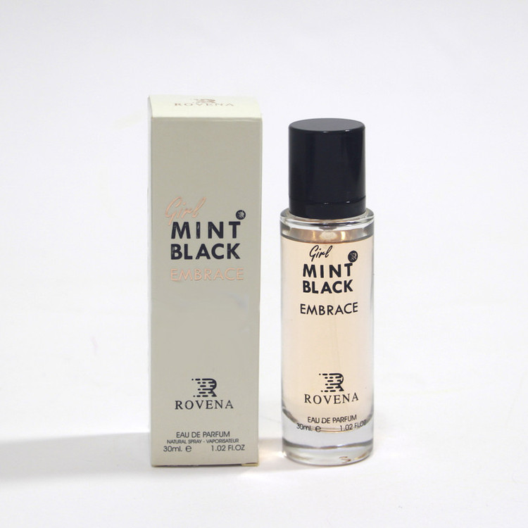 ادکلن روونا Rovena Girl Mint Black Embrace حجم 30 میل با رایحه مشابه با ( مونت بلانک پرنسس ) که توسط عطر کده به شما معرفی میگردد. پیش رایحه این محصول شگفت انگیز از پرتقال ماندارین ، فلفل تشکیل شده در ادامه و با گذر زمان میان رایحه آن شامل گل ارکیده می شود؛ رایحه پایه آن نیز وانیل ، نعناع هندی ، چوب صندل ، چوب ماه گونی است. این رایحه دل انگیز مناسب برای افراد سخت پسند و طرفدار رایحه های خاص تعریف شده است.