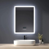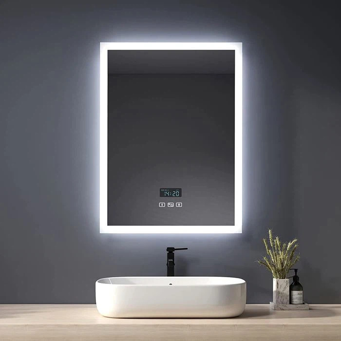 آینه هوشمند موزیکال ضد بخار سرویس بهداشتی و حمام - اسپیکر دار - بلوتوث دار - نمایشگر ساعت - دارای نور پردازی و دماسنج - شیشه سوپر کلیر