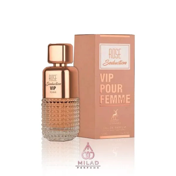 ادو پرفیوم Rose Seduction VIP Femme (رز سداکشن وی آی پی فم) از برند الحمبرا با رایحهای شیرین و گلی، مناسب برای استفاده روزانه و موقعیتهای خاص است. این عطر زنانه با ماندگاری بالا و پخش بوی عالی، گزینهای ایدهآل برای خانمهایی است که به دنبال رایحهای خاص و متمایز هستند.