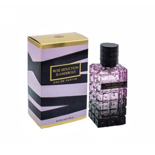 ادکلن رز سداکشن اسلندروس فراگرنس ورد مشابه عطر ادکلن ویکتوریا سکرت اسکندلوس می باشد. عطر زنانه ادکلن رز سداکشن سکرت اسلندروس Rose Seduction Secret Slanderous عطری است شیک و جذاب. این عطر زنانه معادل 100 میل حجم دارد و غلظت آن ادوپرفیوم می باشد. این عطر ادکلن زنانه عطریست اغوا گر و جداب. ادو پرفیوم زنانه اسلندروس عطری زنانه ، جنجال برانگیز و پر مدعا است که باعث بالا رفتن ضربان قلب می شود و شما را به چالش “خودتان را غرق در رایحه اغواکننده ما کنید” دعوت می کند.