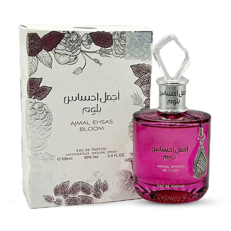 ادکلن اجمل احساس بلوم ارض الزعفران Ajmal Ehsas Bloom Ard Al Zaafaran متعلق به برند معروف عربی ارض الزعفران و از محصولات وارداتی از امارات متحده ی عربی می باشد. این ادکلن با حجم 100 میلی لیتر دارای غلظت Eau de parfum است. رایحه ی کلی این ادکلن رایحه ای گرم، شیرین و تند می باشد. مناسب استفاده ی زنان طراحی شده است. دارای ماندگاری بالا و قابلیت پخش بوی بسیار قوی ای می باشد. به هیچ وجه لباس را لک نمی کند.