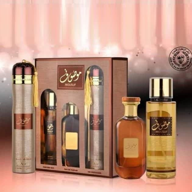 ست و کالکشن موصوف برند ارض الزعفران - ادوپرفیوم 100 میل + بادی اسپلش 250 میل + اسپری 300 میل