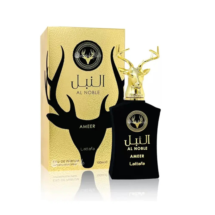 عطر ادکلن النبل عامر مشکی al Noble Ameer از شرکت لطافه عطری است گرم و تند، چوبی و ادویه ای مناسب برای خانم ها و آقایان می باشد. این عطر رایحه ای را ارائه می دهد که بیانگر زیبایی طبیعت است . عطر النبل عامر ، گذشته زیبا، اصالت کهن و اشتیاق به طبیعت را با خود به ارمغان می آورد. این عطر در گروه بویایی شرقی چوبی قرار دارد و بسیار مورد توجه قرار گرفته است . رایحه ای ناب و باکیفیت که مشابهش فقط خودش است .