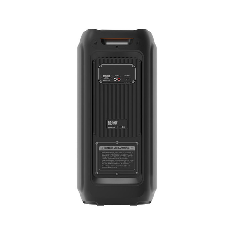 قدرت صدای فوقالعاده بلندگو های پیشرفته این دستگاه به گونه ای طراحی شده اند که صداهای بسیار بلند و در عین حال شفافی را برای شما ارائه میکنند. قدرت پخش پیشرفته پخش موسیقی هرگز از این آسان تر نمی شود. تنها با اتصال دستگاه دارای بلوتوث، (تا برد 10 متر) مانند تلفن هوشمند، آیفون، آی پد و غیره، پلی لیست مورد نظر خود را پخش کنید. فناوری TWS (True Wireless Stereo) فناوری TWS به شما این امکان را میدهد که همزمان به هر دو بلندگوی این دستگاه متصل شوید و از جلوه های صدای موسیقی مورد علاقه خود لذت ببرید و صدا را تا آخرین حد ممکن بالا ببرید. استفاده آسان و راحت این اسپیکر وایرلس قابل حمل، تا 3 ساعت به شما اجازه پخش موسیقی میدهد (با 50 درصد صدا) و گزینه های بسیار زیادی برای اتصال راحت دارد، مانند دیسک USB، کارت Micro SD، جک AUX، میکروفون و جک ورودی گیتار. حالت کارائوکه (همخوانی) با ویژگی سرگرم کننده کارائوکه میتوانید یک مهمانی فراموش نشدنی بسازید و آهنگ های مورد علاقه خود را با دوستانتان همخوانی کنید. قابلیت RGB (پخش نور) مهمانی خود را با ویژگی پخش نور خیره کننده این دستگاه به یاد ماندنی کنید و از نورپردازی عالی این اسپیکر در فضای مهمانی لذت ببرید. ویژگی های کلی محصول بلوتوث باتری قابل شارژ ریموت کنترل رادیو FM پخش با USB حالت کارائوکه (همخوانی) قابلیت ظبط صدا ضد آب ورودی line-in