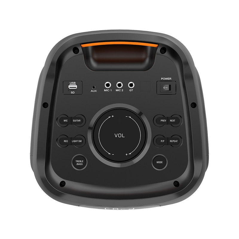 قدرت صدای فوقالعاده بلندگو های پیشرفته این دستگاه به گونه ای طراحی شده اند که صداهای بسیار بلند و در عین حال شفافی را برای شما ارائه میکنند. قدرت پخش پیشرفته پخش موسیقی هرگز از این آسان تر نمی شود. تنها با اتصال دستگاه دارای بلوتوث، (تا برد 10 متر) مانند تلفن هوشمند، آیفون، آی پد و غیره، پلی لیست مورد نظر خود را پخش کنید. فناوری TWS (True Wireless Stereo) فناوری TWS به شما این امکان را میدهد که همزمان به هر دو بلندگوی این دستگاه متصل شوید و از جلوه های صدای موسیقی مورد علاقه خود لذت ببرید و صدا را تا آخرین حد ممکن بالا ببرید. استفاده آسان و راحت این اسپیکر وایرلس قابل حمل، تا 3 ساعت به شما اجازه پخش موسیقی میدهد (با 50 درصد صدا) و گزینه های بسیار زیادی برای اتصال راحت دارد، مانند دیسک USB، کارت Micro SD، جک AUX، میکروفون و جک ورودی گیتار. حالت کارائوکه (همخوانی) با ویژگی سرگرم کننده کارائوکه میتوانید یک مهمانی فراموش نشدنی بسازید و آهنگ های مورد علاقه خود را با دوستانتان همخوانی کنید. قابلیت RGB (پخش نور) مهمانی خود را با ویژگی پخش نور خیره کننده این دستگاه به یاد ماندنی کنید و از نورپردازی عالی این اسپیکر در فضای مهمانی لذت ببرید. ویژگی های کلی محصول بلوتوث باتری قابل شارژ ریموت کنترل رادیو FM پخش با USB حالت کارائوکه (همخوانی) قابلیت ظبط صدا ضد آب ورودی line-in