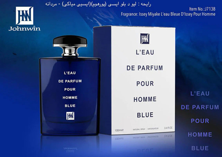 عطر ادکلن لئو د پرفیوم پور هم بلو Leau De Parfum Pour Homme Blue جانوین جکوینز عطری مردانه و شیک با رایحه ی خنک و تند است و مشابه و نمونه شرکتی مشابه ادکلن ایسی میاکه بلو می باشد. یکی از بی نظیرترین و منحصر به فرد ترین عطر های مردانه همیتن ادکلن ایسی میاکه بلو است، عطری گرم، راز آلود و آبی که رایحه گل های رمانتیک در هنگام غروب را در قلب و چوب های معطر را در پایه خود دارد.