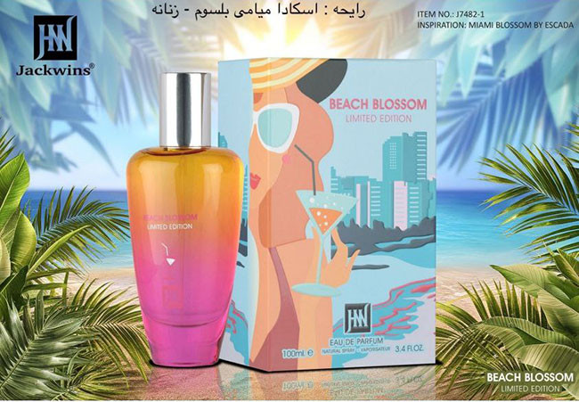 عطر زنانه میامی بلوسوم از برند اسکادا، عطری با رایحه گلی میوه ای است که در سال ۲۰۱۹ به بازار عرضه شد. طراح این عطر کارولین ساباس است.ماندگاری خوب و پخش بوی دلپذیر، انتخابی عالی برای بانوان جوان و شاداب.ادکلن زنانه بیچ بلوسوم جکوینز (BEACH BLOSSOM) با حجم 100 میلیلیتر، نسخهای خاص و خوشبو از رایحه محبوب Escada Miami Blossom است. این عطر با حال و هوای تابستانی، ترکیبی از میوههای آبدار و گلهای لطیف را در خود جای داده تا حس شادابی، سرزندگی و انرژی مثبت را به شما هدیه دهد.این ادکلن برای بانوانی که به دنبال رایحهای شاداب، خوشانرژی و متفاوت برای روزهای گرم هستند، یک انتخاب بینظیر است.