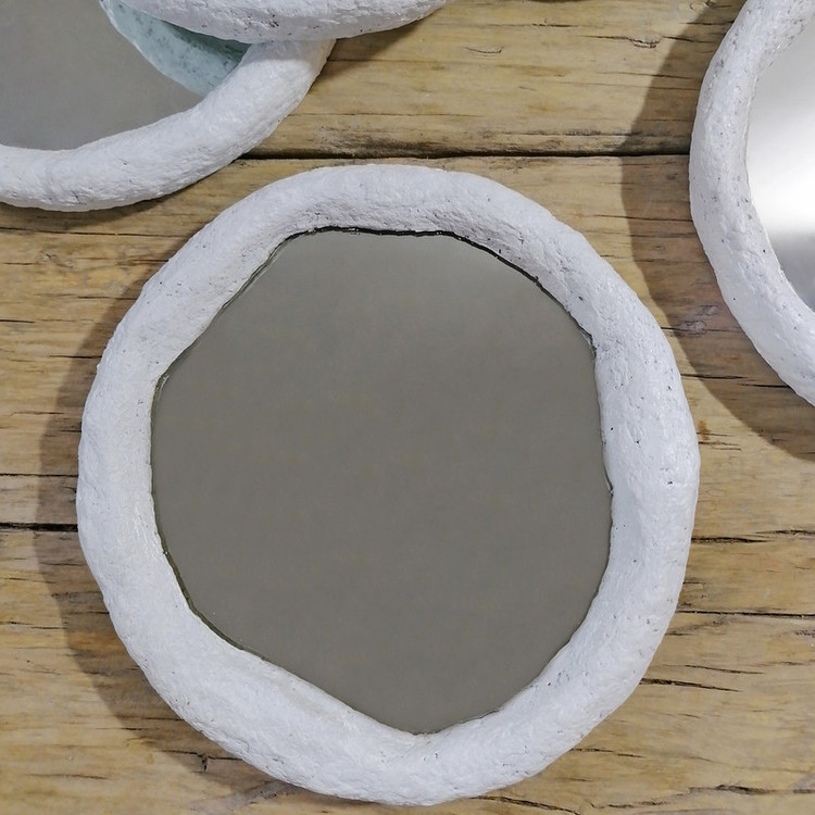 قاب این آیینه از خمیر پاپیه ماشه ساخته شده است که کاملا دست ساز و طبیعت دوست است بسیار مستحکم و مقاوم میباشد این طراحی منحصر به فرد باعث می شود که این آیینه در هر محیطی به چشم بیاید و توجه را به خود جلب کند.