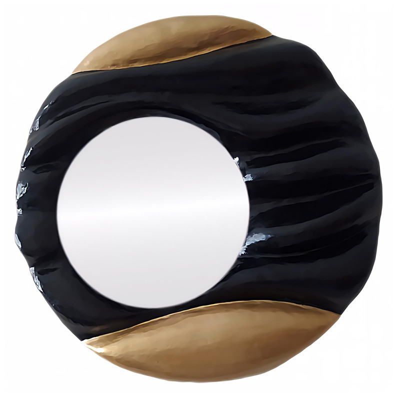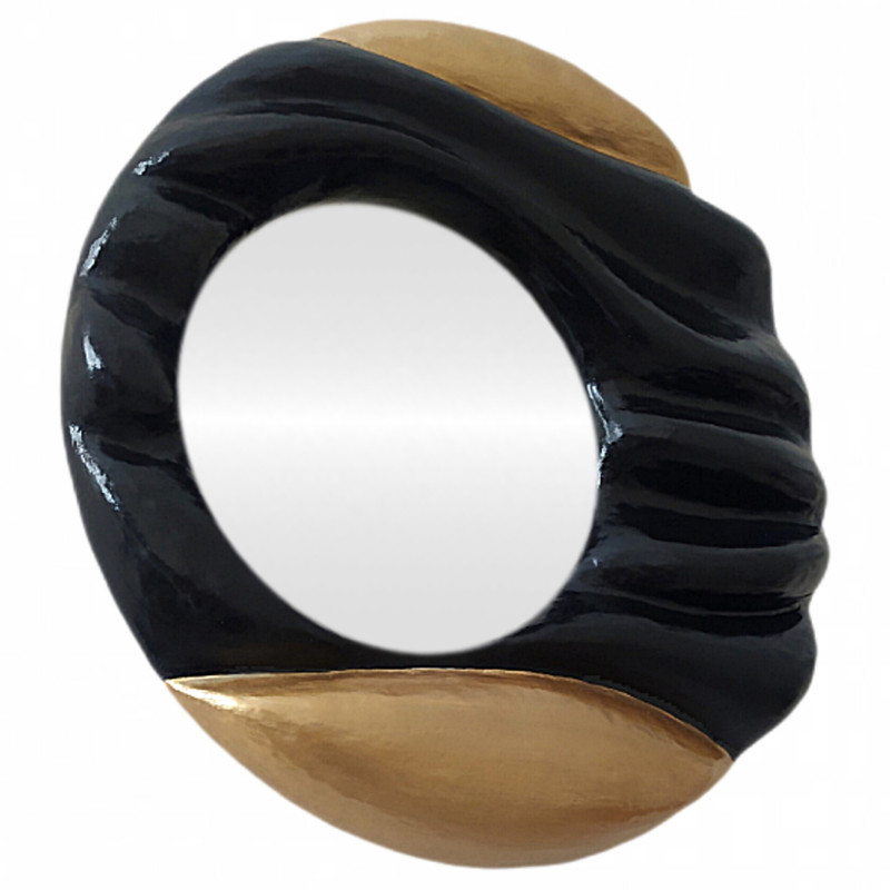 این آینه بسیار سبک بوده و در برابر رطوبت مقاوم است. سطح آن با رنگ آکریلیک و مایع ورق طلا رنگآمیزی شده است. پایهی آینه از جنس MDF خام میباشد. برجستگیهای کار، تلفیقی از یونولیت و پاپیهماشه هستند که جلوهای خاص و هنری به محصول بخشیدهاند. این اثر بهصورت دستساز ساخته شده است.