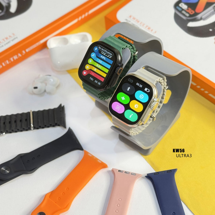 ساعت هوشمندKW56 ULTRA3 از برند Keqiwear است و جزو طرح اپل واچ اولترا با سایز 49 میلی متر محسوب می شود و دارای ایرپاد پرو و 7بند ساعت سیلیکونی در طرح و رنگ متنوع می باشد. یکی از کاربردهای ساعت هوشمند استفاده از آن برای بررسی سلامتی است. با وجود سنسورهای سلامتی همچون ضربان قلب، فشار خون، سطح اکسیژن خون و… می توان به صورت کلی وضعیت عمومی سلامتی را مورد پایش قرار داد و گزارش های مربوط به آن را از طریق برنامه رابط بررسی کرد. ساعت هوشمند مدل KW56 Ultra3 دارای سنسورهای حساس به حرکت دست است، به شکلی که اگر در هنگام تماس، انگشتان دست را به هم بزنید تماس برقرار خواهد شد.