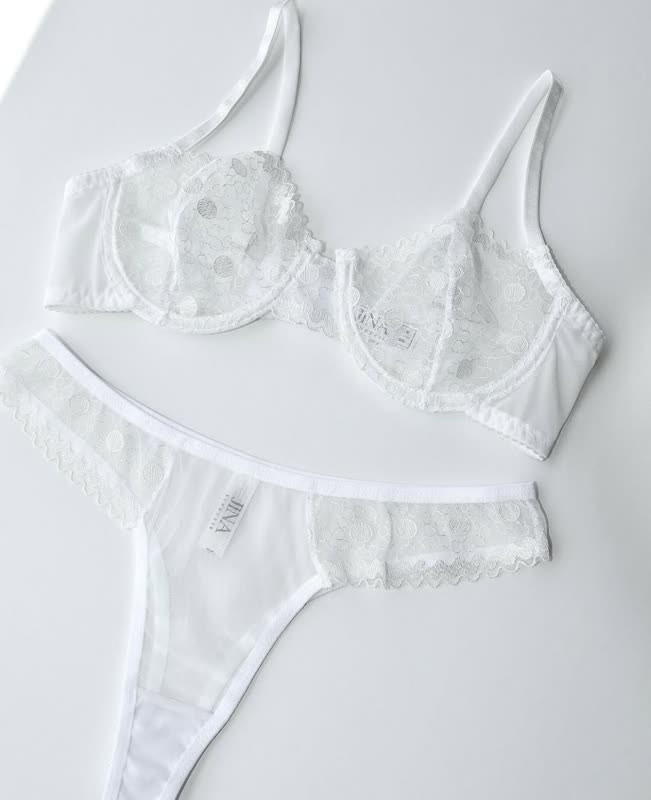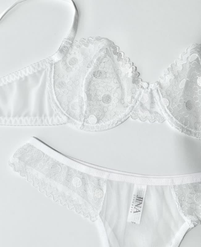 ست شورت و سوتین توری فنردار ژینا Jina سفید کد 2010 ، از جنس توری است . سوتین این ست فنردار و کاملا توری بوده، مدل شورت بکلس از جنس توری و لایه داخلی فاق شورت نخی است. این ست علاوه بر زیبایی، راحت هم هست و ظرافتش حتی از عکس هم به چشم میاد و تنخورش عالیه.