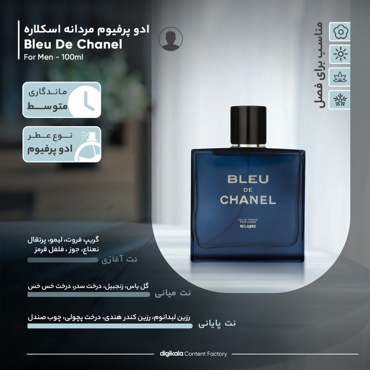 ادوپرفیوم مردانه اسکلاره بلو دو شانل مدل Bleu De Chanel حجم 100 میلیلیتر