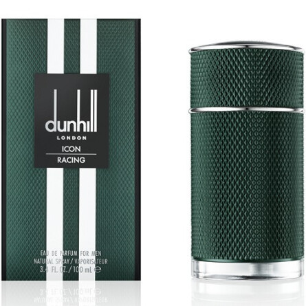 ایکون ریسینگ چهارمین عطر از کالکشن ایکون است که در اکتبر 2017 به بازار آمد. این عطر چارچوب مفهومی مردانه، جدید و پویایی دارد و از چیزهایی همچون مسابقات، آدرنالین و میراث دانهیل در صنعت خودرو الهام ميگیرد. با ایکون ریسینگ تمامی غرایز درونیتان را بیدار میکنید و به مردی بیباک و نترس تبدیل میشوید. این عطر مردانه برای مردان ماجراجو و جاهطلب طراحی شده است.