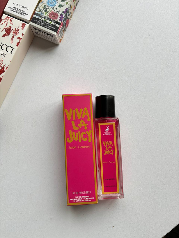 عطری است زنانه و خاص. عطر ادکلن جویسی کوتور ویوا لا جویسی-Juicy Couture Viva la Juicy، به عنوان یک عطر گلدار ، میوه ای و خوراکی همراه با رایحه ای از توت های وحشی و نارنگی آبدار می باشد . رایحه میانی آن شامل ترکیب لطیفی از پیچ امین الدوله ، یاسمن و یاس است در حالی که رایحه پایه ما را در انتظار یک قطعه موسیقی احساساتی از کهربا ، کارامل ، وانیل ، چوب صندل و بادام سوخته می گذارد . شیشه عطر در اندازه های 50 و 100 میل با یک روبان خوش رنگ بنفش طراحی شده و بسیار لوکس و مجلل به نظر می آید . این محصول علاوه بر عطر مجموعه ای از محصولات مراقبت از پوست شامل لوسیون و کرم بدن را دارا می باشد . بوی غالب و اصلی آن وانیل ، کارامل و بادام سوخته است . تفاوت برجسته ی این محصول به بقیه عطر ها بطری بسیار شیک و رایحه ی جذاب ، محرک ، فریبنده و خوردنی آن است.